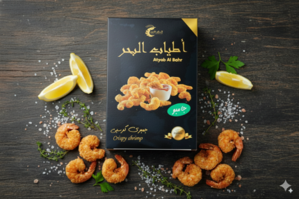 جمبري كرسبي جاهز للقلي من ألذ وأسهل أنواع الجمبري الجاهزة للتحضير الفوري، خالي تمامًا من أي مواد حافظة يُقدَّم بعناية